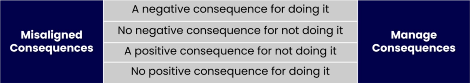 So, unlike coaching, counseling may span multiple meetings in the Engage step before moving forward or getting through the remaining steps. In some cases, you may need to adjust and manage consequences to ultimately change behavior.