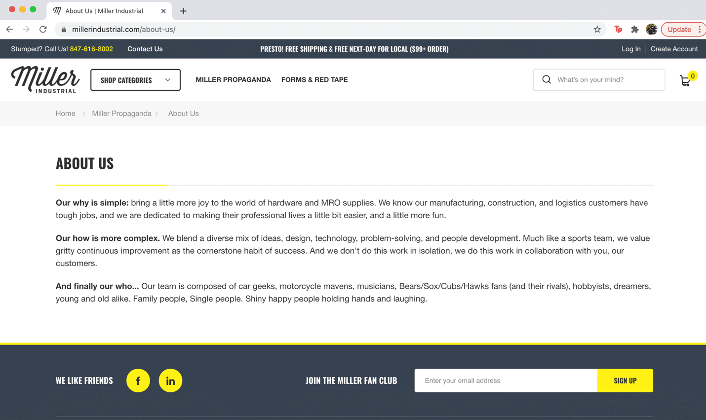 Miller is already a hybrid – a hardware store on steroids with 90% of what we do being B2B for manufacturers, construction companies and logistics companies. I want to keep extending our hybrid omnichannel presence. But if I would’ve bought a more traditional distributor, I would lean more into the digital side as a competency and improve the traditional metrics that go down the Lean Six Sigma mindset of operations, using digital technology to make progress.