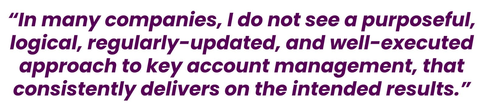 This lack of key account management exists even though there’s very little new business development activity and growth relies on maximizing current accounts.