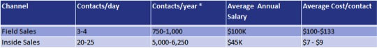 True inside salespeople are skilled hunters. They are motivated by capturing new accounts and rewarded accordingly. This is in contrast to customer service people who are better at gathering. When the proper structures are set up for proactive inside sales, distributors can cost effectively serve mid-market and smaller accounts in a manner that was previously infeasible. The economics of inside sales are shown below in Table 2. They can reach 20 to 25 customers per day at a much smaller cost per contact than field sales. Typical inside sales accounts spend $2500 to $15000 or even $25000 per year.