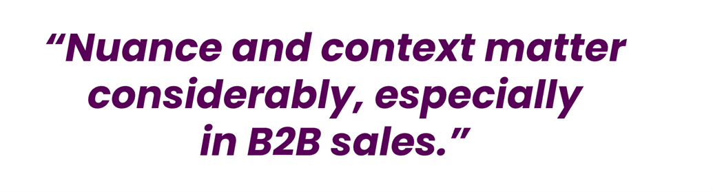 To the original point for this article, hopefully, it’s clear that one size does not fit all. My friend Mike Marks is fond of saying that if you’ve seen one sales transformation, you’ve seen one. That doesn’t mean there aren’t patterns and similarities, but to get the best results, you need to figure out what’s right for your company, with your buyers and customers, in your situation.