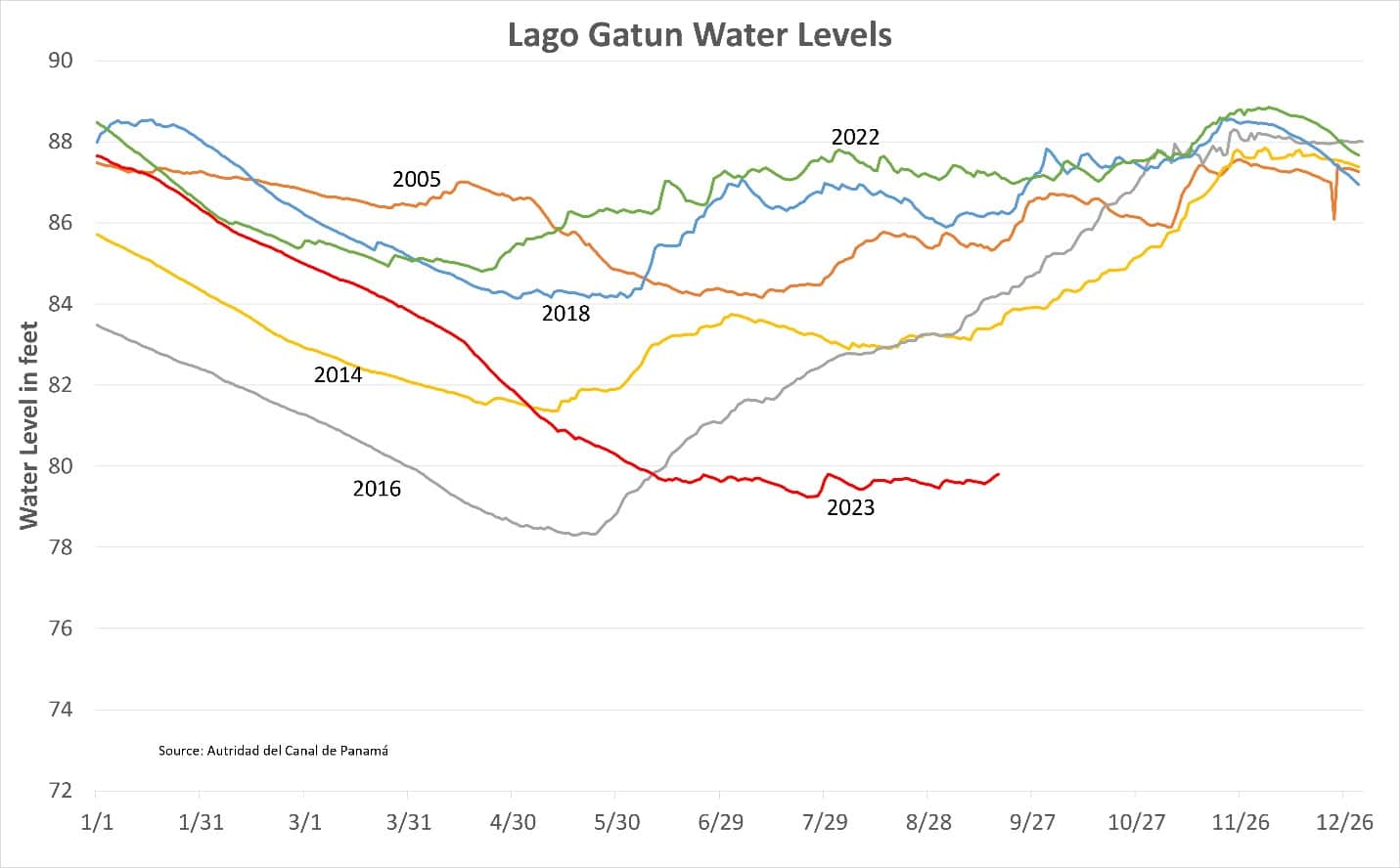 Most people are unaware that the Panama Canal operates on freshwater from Lago Gatun and a reservoir Lago Alajuela, using around two billion gallons a day. The projected water level at Lago Gatun has plunged and is expected to reach record lows.
