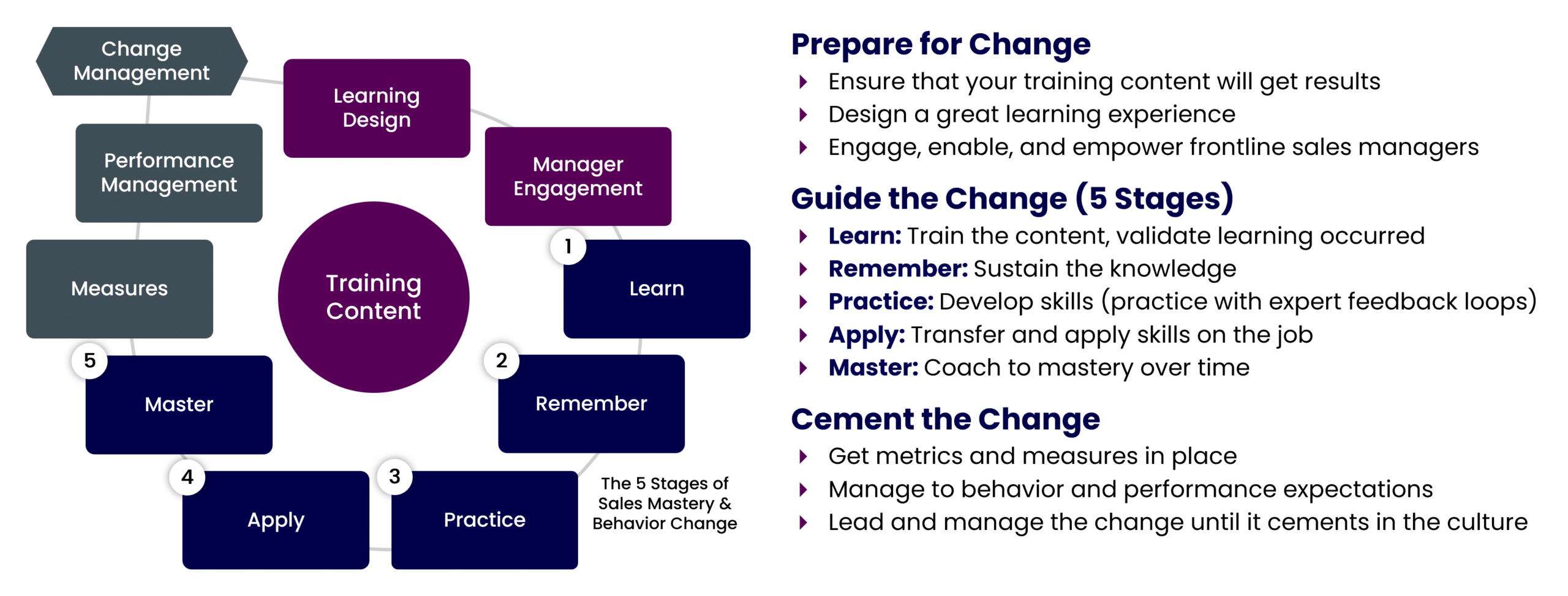 The first is my Sales Training System, which I’ve written about here before. Not all change projects are training related, but the framework includes what I call “The 5 Stages of Sales Mastery & Behavior Change,” which you can also apply outside of sales training situations, whenever behavior change is the goal.