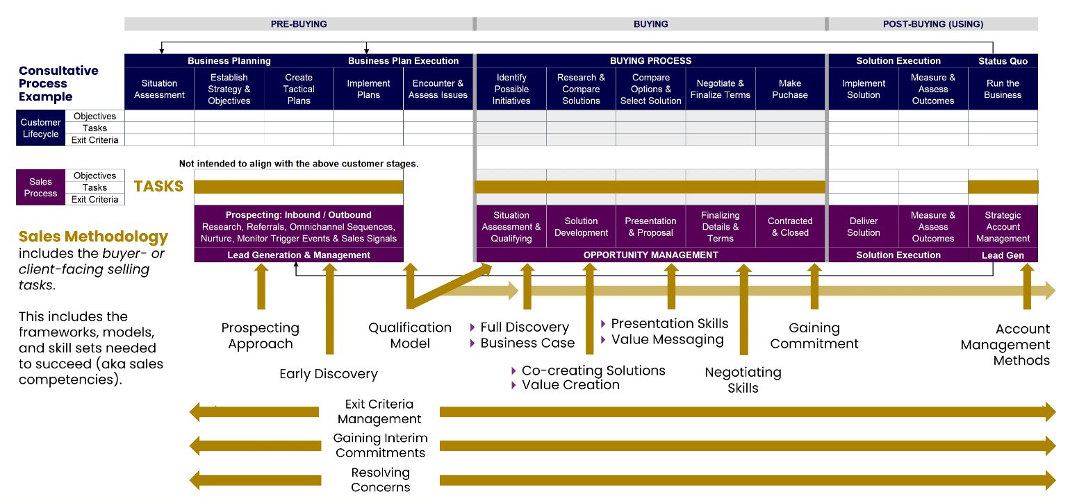How do you do this? Well, if you have internal expertise, you can build one based on your buyer research and the best practices of your top performers. Or you can buy one. In either case, ensure it is modern, buyer-centric, consultative, value focused and outcome oriented, and that it covers the entire customer lifecycle. The key is to select or develop a sales methodology that fits your sales context, customers, goals and culture, and to train your salespeople and managers on how to use it effectively.